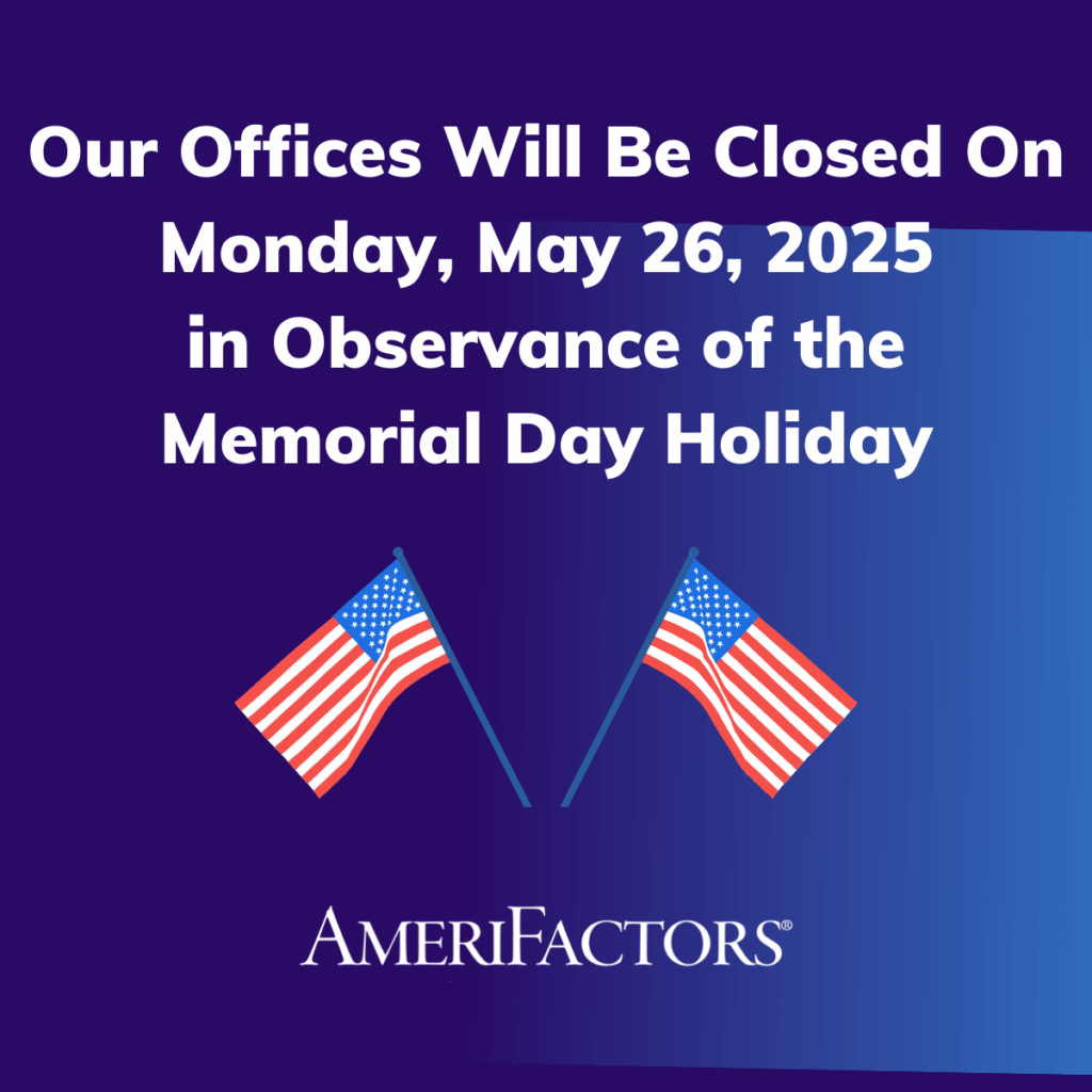 AmeriFactors will be closed on Monday, May 26, 2025.