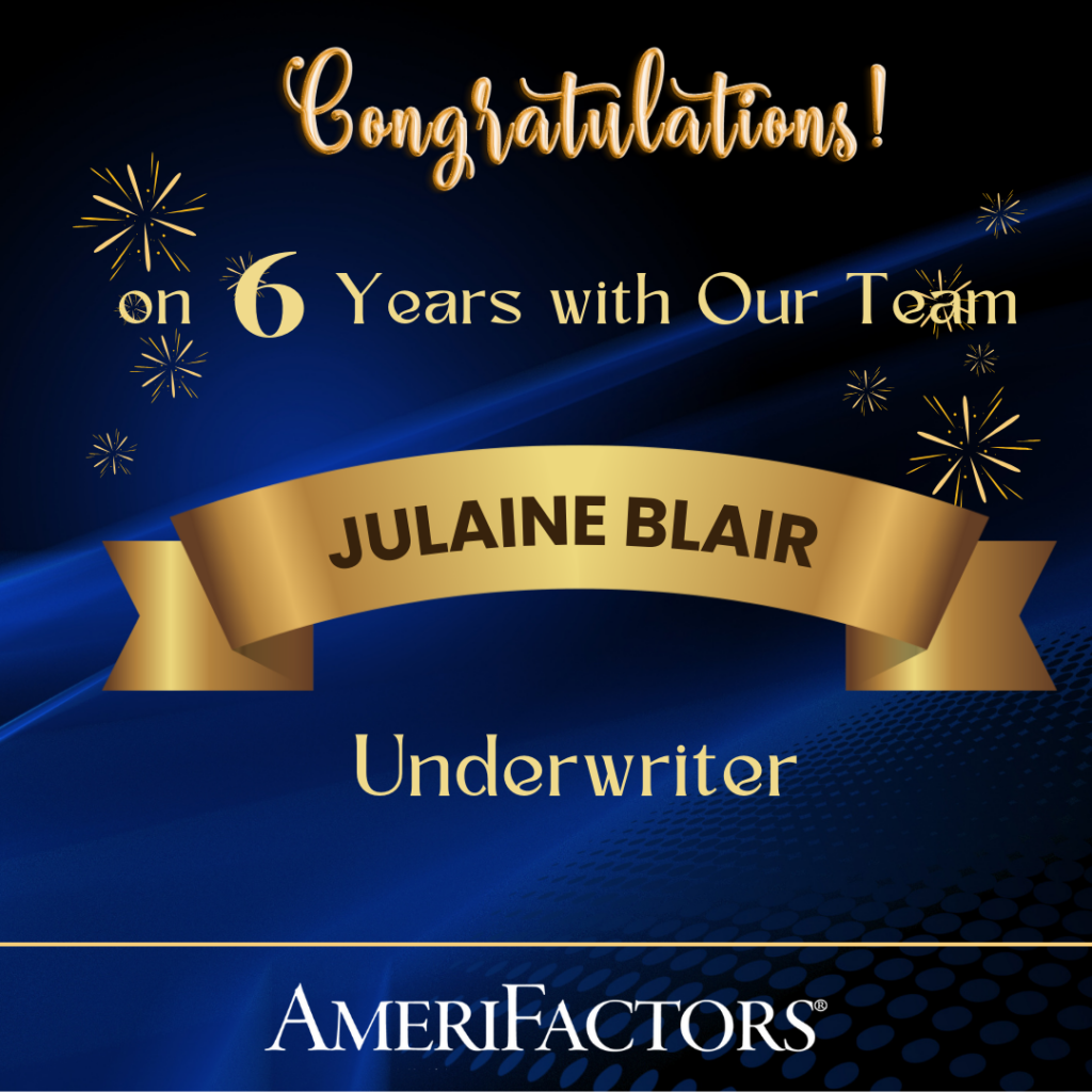 Congratulations Julaine on 6 Years of Service at AmeriFactors.