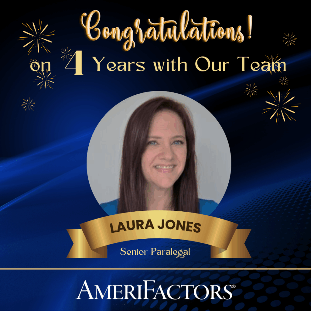 Congratulations Laura on 4 Years of Service at AmeriFactors.