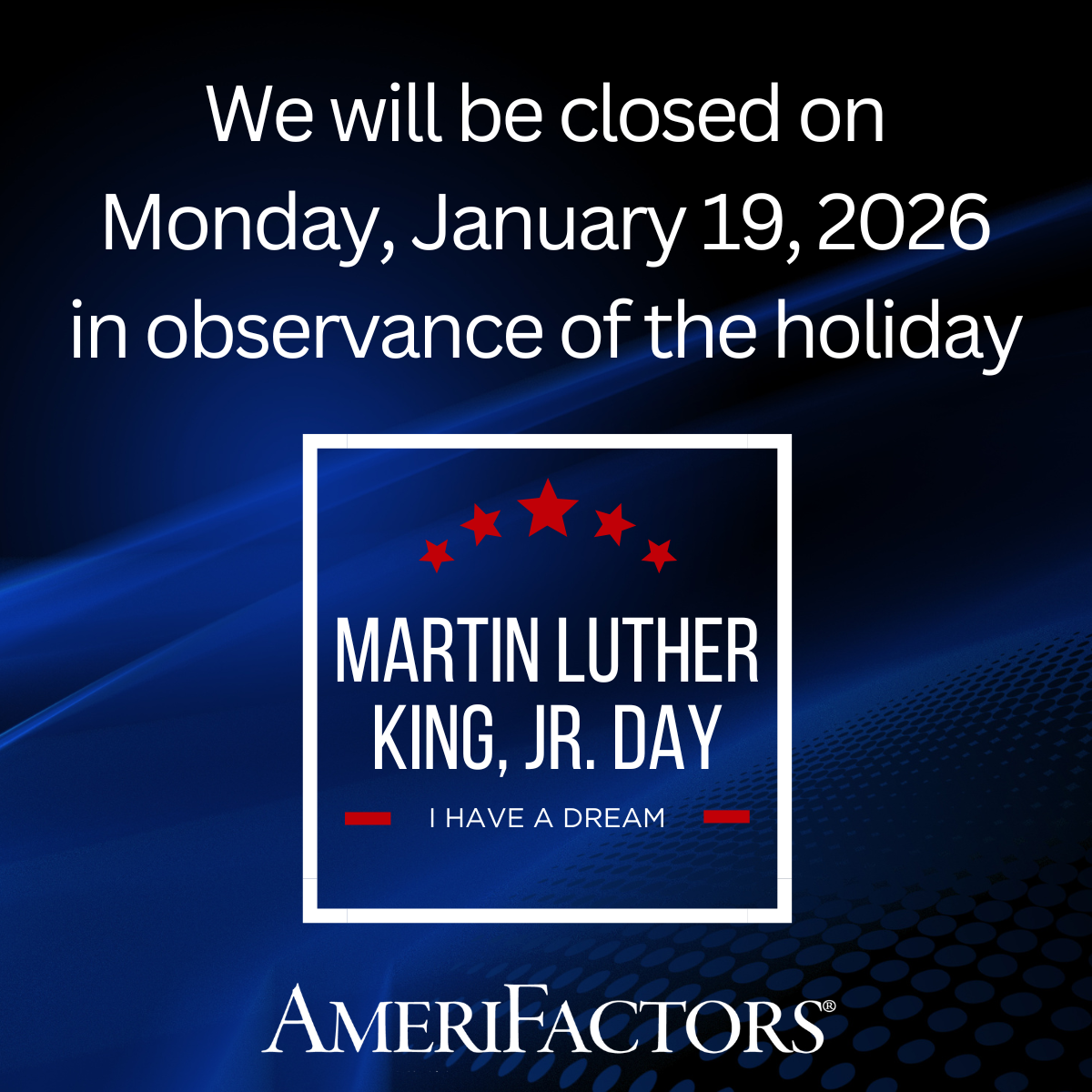 AmeriFactors will be closed on Monday, January 19, 2026 in observance of the holiday.